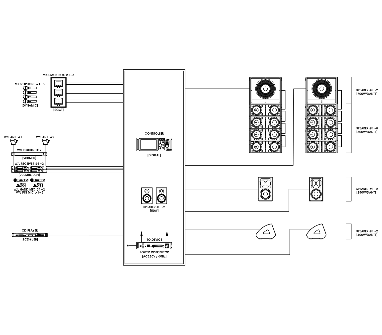 강당음향방송용/7000W/Dante